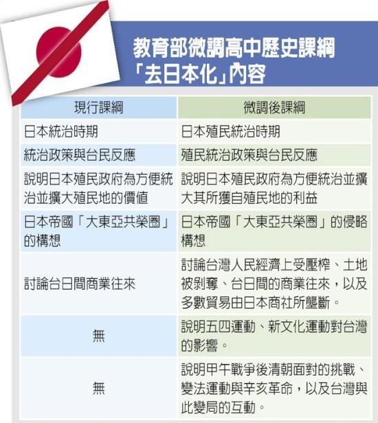 臺當(dāng)局“教育部”微調(diào)高中歷史課綱“去日本化”內(nèi)容(圖片來源:臺灣《中國時報》)