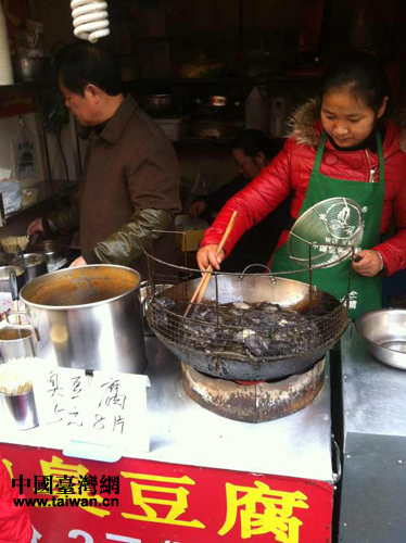 美食街里的臭豆腐小攤。這也是只有在家鄉(xiāng)才吃的到的最正宗的味道。(中國(guó)臺(tái)灣網(wǎng) 高斯斯 攝)