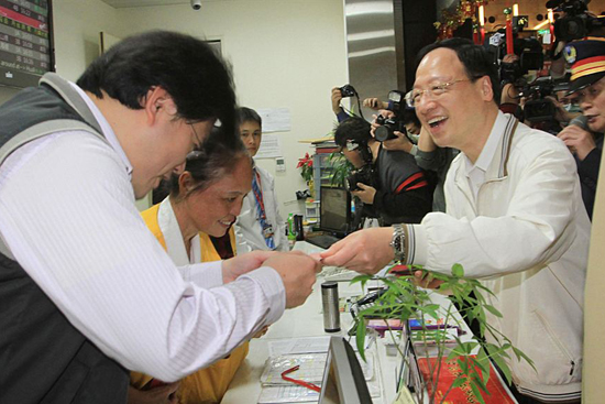 中國臺灣網(wǎng)1月29日消息 據(jù)臺灣媒體報(bào)道,臺當(dāng)局“行政院長”江宜樺今天下午在“交通部長”葉匡時(shí)的陪同下,來到臺北火車站巡視島內(nèi)春運(yùn)情況,并致贈紅包慰問辛苦的工作人員。(中國臺灣網(wǎng) 王思羽)