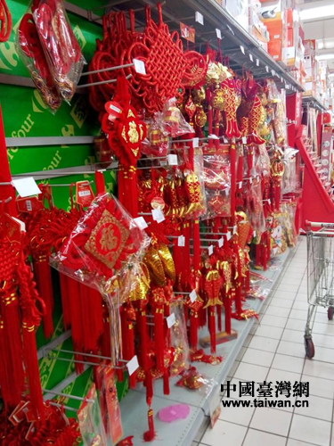 超市中喜氣的中國(guó)結(jié)。(中國(guó)臺(tái)灣網(wǎng) 秦彬 攝)