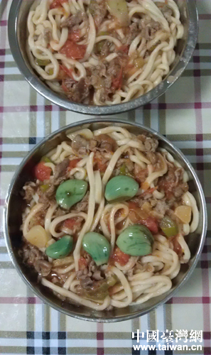 王文英自制的“小英西紅柿牛肉面”廣受好評,味道極佳。(中國臺灣網(wǎng) 王思羽 攝)