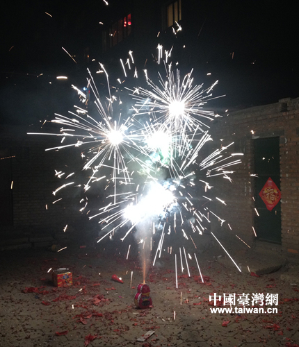 “接財神”的絢爛煙花。(中國臺灣網(wǎng) 吳知音 攝)