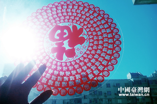 親手貼上窗花,喜慶的顏色帶來開心和幸福。(中國臺灣網(wǎng) 劉承思 攝)