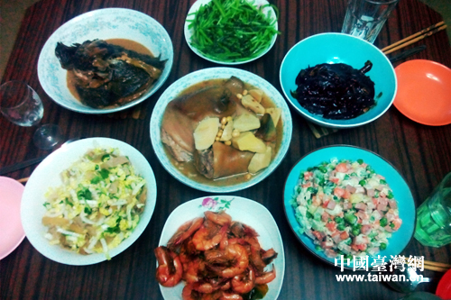 豐盛的年夜飯。(中國臺灣網(wǎng) 劉承思 攝)