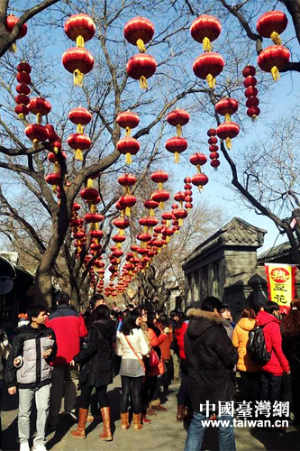春節(jié)期間熱鬧的南鑼鼓巷。(中國臺灣網(wǎng) 劉承思 攝)