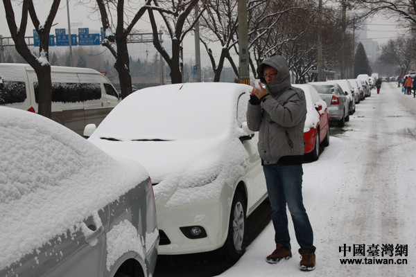 行人在興奮地拍攝雪景。(中國臺灣網(wǎng) 王文英攝)