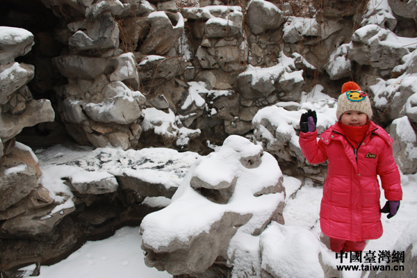 瀟湘館中的竹林,棵棵翠竹盡著盛裝。(中國(guó)臺(tái)灣網(wǎng) 王文英攝)在雪中興奮不已的小朋友。(中國(guó)臺(tái)灣網(wǎng) 王文英攝)