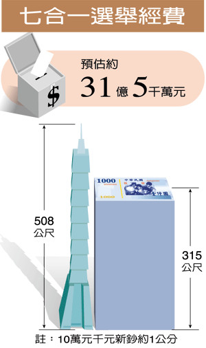 臺灣“七合一”選舉經(jīng)費(fèi)。(圖片來自臺媒)