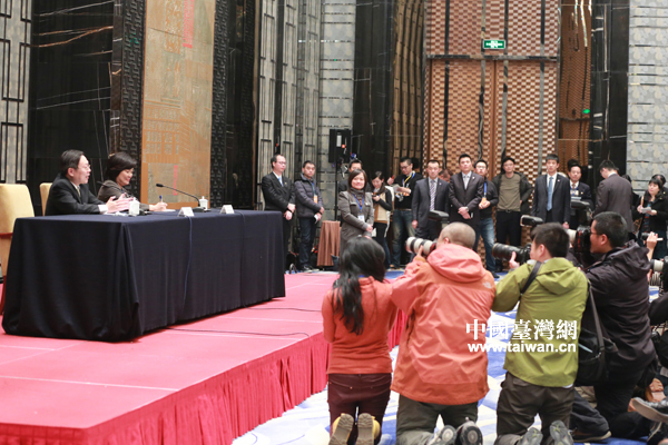 2月11日,臺(tái)灣陸委會(huì)負(fù)責(zé)人王郁琦在南京紫金山莊舉行記者會(huì),說(shuō)明“張王會(huì)”成果。(中國(guó)臺(tái)灣網(wǎng) 田云鵬 攝)