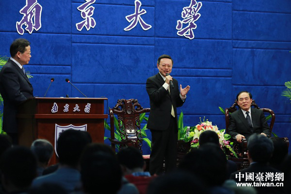 南大黨委副書記朱慶葆表示,南京大學(xué)與臺灣有特殊的歷史淵源。南京大學(xué)的前身就是后來遷臺的“中央大學(xué)”。兩年前,中國國民黨榮譽主席吳伯雄在南京大學(xué)被授予名譽博士學(xué)位,吳伯雄也曾經(jīng)先后三次訪問南京大學(xué)。