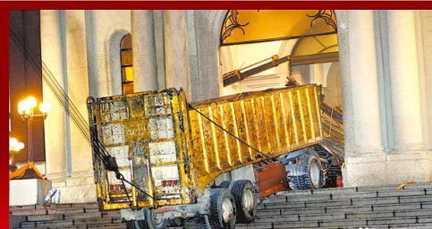 砂石車沖撞馬英九官邸。(圖片取自臺媒)