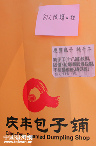 慶豐包子鋪發(fā)出通知,每人限購六粒。(中國臺(tái)灣網(wǎng) 李婷婷 攝)
