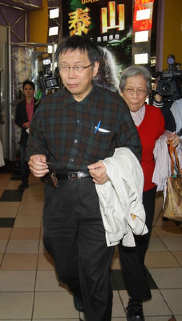 臺大醫(yī)師柯文哲(前)17日前往臺北微風(fēng)廣場國賓影城觀賞電影《大稻埕》。(臺媒圖)