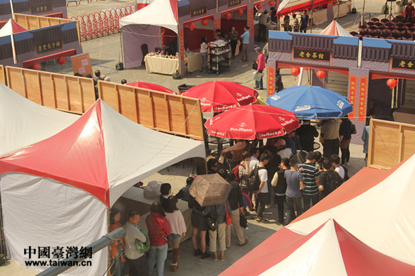 2月17日中午11時,距離撤展還有5個小時,老舍茶館的茶葉、茶具及帶有老舍茶館字號的毛巾已于昨天銷售完畢,已經(jīng)提前撤展。慶豐包子依然火爆,仍有不少臺灣民眾在烈日下排隊購買。(中國臺灣網(wǎng) 李婷婷 攝)