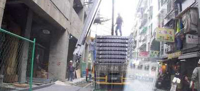 施工現(xiàn)場鋼條掉落。來自臺媒