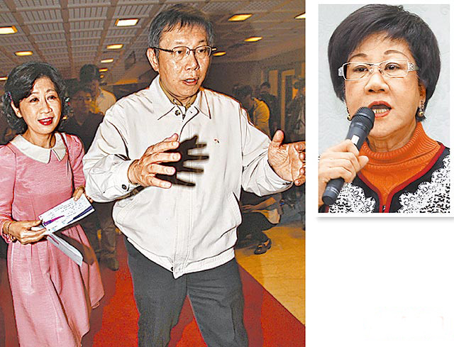 中國臺灣網(wǎng)2月24日消息 據(jù)臺灣媒體報(bào)道,綠營臺北市長之爭殺紅眼,呂秀蓮矛頭對準(zhǔn)臺大醫(yī)師柯文哲,質(zhì)疑、抹藍(lán)各種手段,只待把他整下馬。柯文哲昨與妻子陳佩琪現(xiàn)身臺灣音樂廳欣賞小提琴家徐錫隆的獨(dú)奏會,陳佩琪護(hù)夫心切,對于呂秀蓮的質(zhì)疑,她指出,“說話前要拿出證據(jù)”,陳愈講愈激動,柯連忙打斷:“好啦,不要講了!”