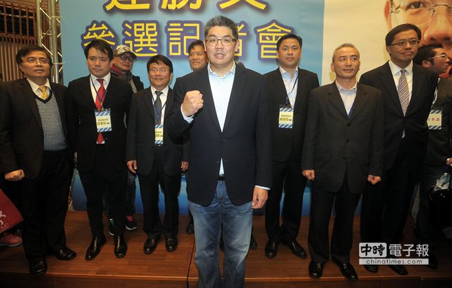 連勝文24日宣布參選臺北市長,并且與他的市政顧問一起合影留念。(圖片來自臺媒)