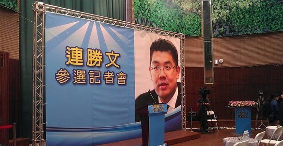 連勝文參選記者會(huì)無黨徽,幕僚回應(yīng)非刻意切割國民黨。(臺(tái)媒圖)