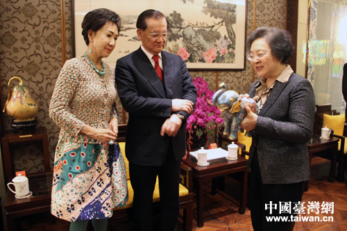 林文漪向連戰(zhàn)夫婦贈(zèng)送景泰藍(lán)“萬(wàn)象更新”。(中國(guó)臺(tái)灣網(wǎng) 王怡然 攝)
