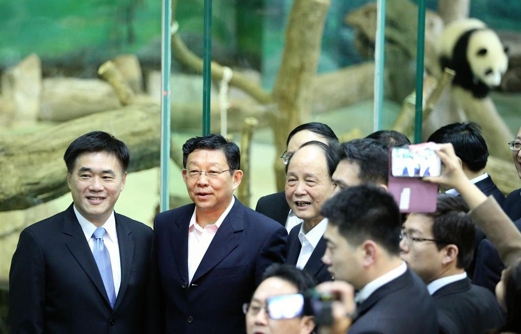 郝龍斌高興說,這是娘家人來看熊貓。陳德銘則稱贊郝龍斌的外型和熊貓挺像的。(中國臺灣網 李帥)