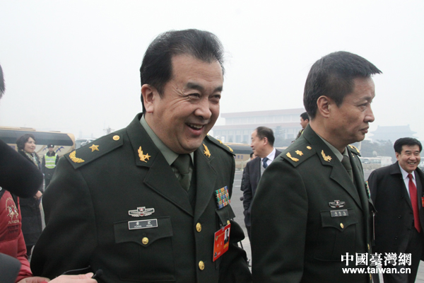 政協(xié)委員黃宏在人民大會(huì)堂外接受記者采訪。(中國(guó)臺(tái)灣網(wǎng) 張潔 攝)