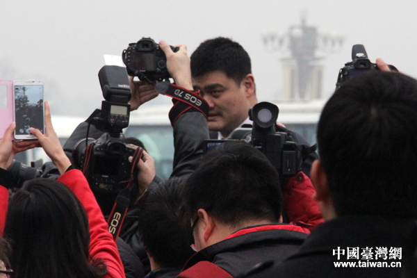 全國(guó)政協(xié)委員姚明被記者圍堵。(中國(guó)臺(tái)灣網(wǎng) 王怡然 攝)
