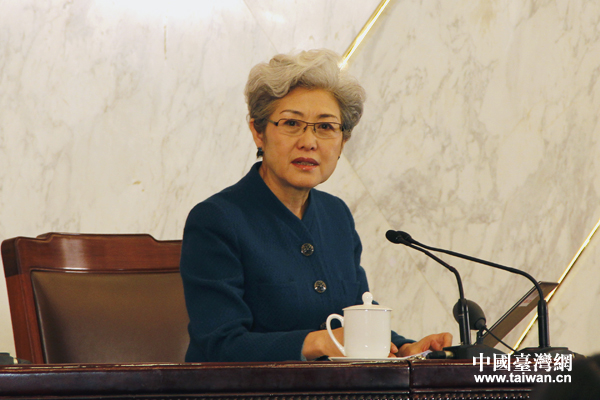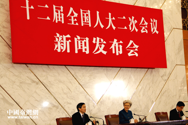 十二屆全國(guó)人大二次會(huì)議副秘書長(zhǎng)、發(fā)言人傅瑩介紹了會(huì)議議程和人大工作相關(guān)情況,并回答中外記者的提問。(中國(guó)臺(tái)灣網(wǎng)記者 高斯斯 攝)