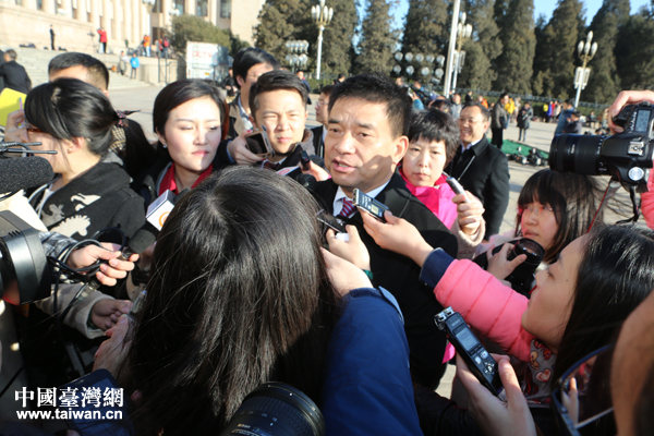 各路記者奮力“圍堵”人大代表。(中國臺灣網(wǎng) 王思羽 攝)