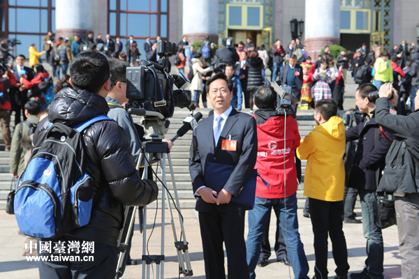 多位人大代表會后接受記者采訪。(中國臺灣網(wǎng) 王思羽 攝)
