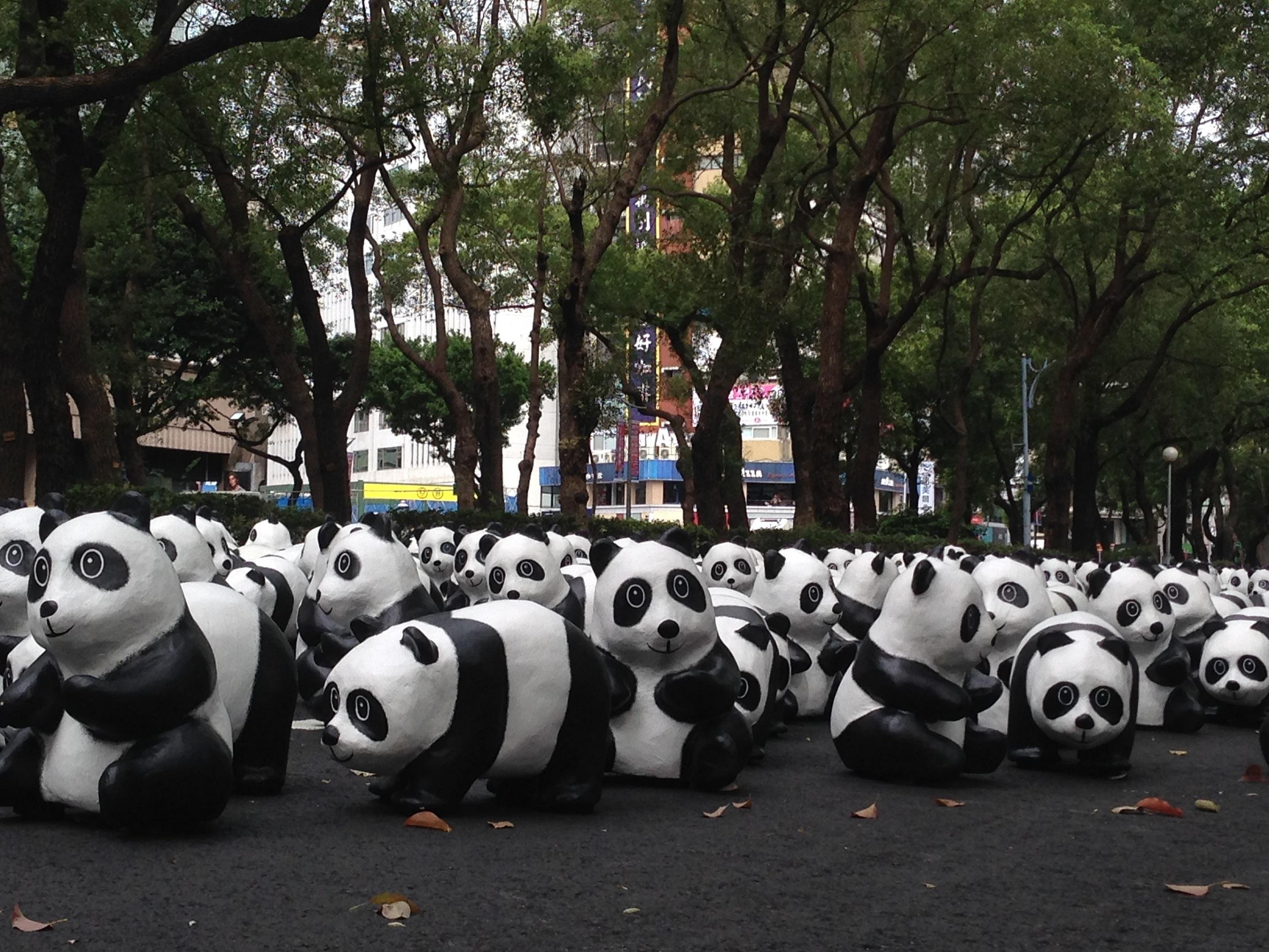 紙熊貓在林蔭大道愜意乘涼。(來自臺媒)