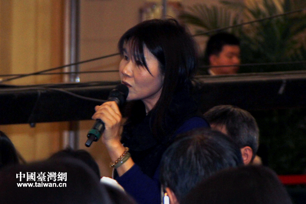 臺灣《旺報》記者在新聞發(fā)布會上針對兩岸環(huán)保合作相關(guān)問題提問。(中國臺灣網(wǎng) 高斯斯 攝)
