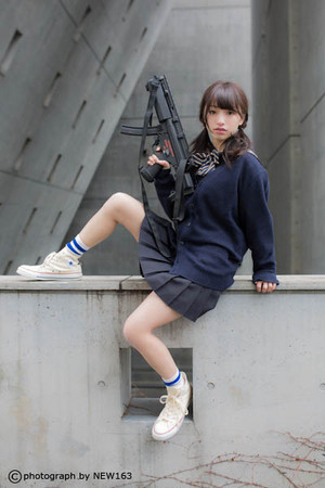 日本學生妹持槍萌照臺灣爆紅,海量美圖超越界。(臺媒圖)