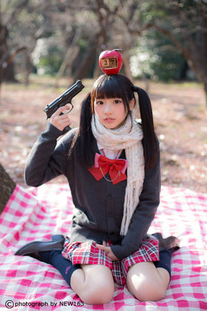 日本學(xué)生妹持槍萌照臺灣爆紅,海量美圖超越界。(臺媒圖)