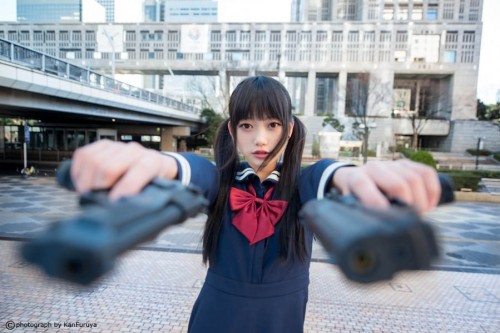 日本學(xué)生妹持槍萌照臺(tái)灣爆紅,海量美圖超越界。(臺(tái)媒圖)