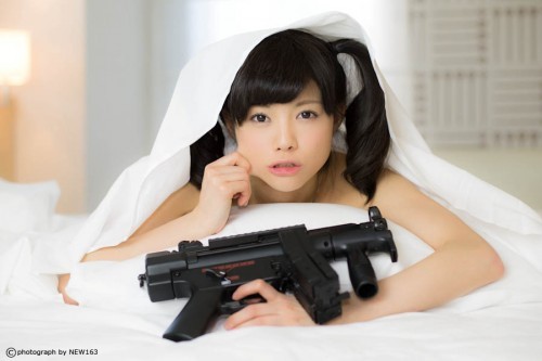日本學(xué)生妹持槍萌照臺灣爆紅,海量美圖超越界。(臺媒圖)