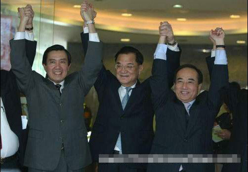連戰(zhàn)設夜宴為臺灣"立法院長"王金平祝壽 馬英九缺席。圖片中從左至右依次為馬英九、連戰(zhàn)、王金平。(圖片取自網(wǎng)絡)