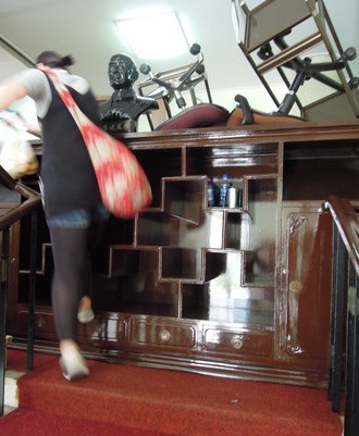 蔣介石曾放過書本的柜子,反服貿(mào)學(xué)生一度用來阻擋樓梯通道。(臺媒圖)