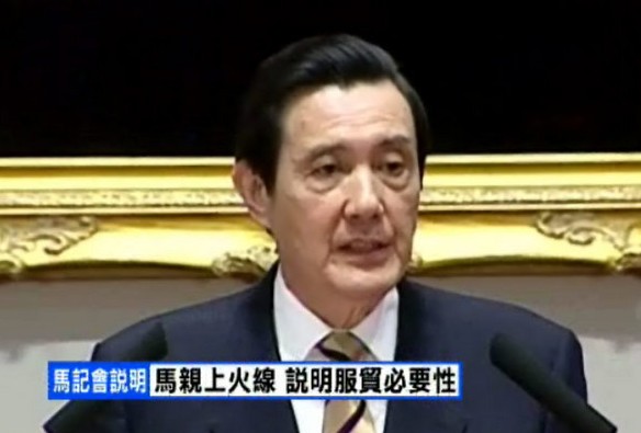 馬英九表態(tài)服貿(mào)不可能撤,將研議逐條審查。(臺(tái)媒圖)