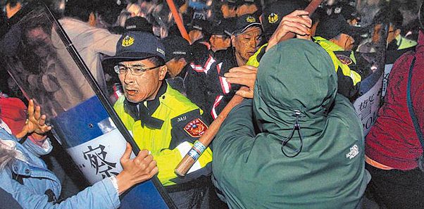 昨晚約7時30分,學(xué)生群眾突襲“立法院”鄰街的“行政院”,并打破玻璃侵入辦公室,其余學(xué)生也陸續(xù)從“立法院”轉(zhuǎn)道,上千名學(xué)生前往“行政院”廣場前靜坐,4小時后,到達現(xiàn)場的警方才逐步控制局面。