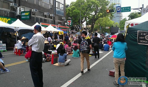 昨日,學(xué)生及民眾集結(jié)凱道反服貿(mào),人潮從凱道蔓延至中山南路、濟南路、青島東路,反服貿(mào)學(xué)生團體總指揮林飛帆30日晚間號召大家排班守“立法院”,不過31日下午議場外群眾人數(shù)減少,“立法院”青島東路側(cè)停車場成為“曬被場”。