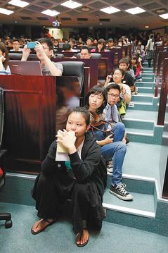 中國臺灣網(wǎng)4月1日消息 據(jù)臺灣《聯(lián)合報》報道,臺當(dāng)局“經(jīng)濟部”服貿(mào)校園講座列車昨天駛進首站臺灣政大,由“經(jīng)濟部次長”杜紫軍先發(fā),近三百名師生涌入會場。校方表示,上周開放報名就“秒殺”,搶手程度不輸路跑比賽。由于座位有限,不少學(xué)生直接坐在走道上聽講。(中國臺灣網(wǎng) 朱煉)