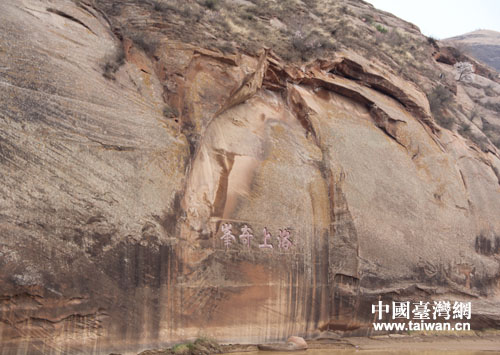 "洛上奇峰"的摩崖題刻。(中國(guó)臺(tái)灣網(wǎng) 秦彬 攝)