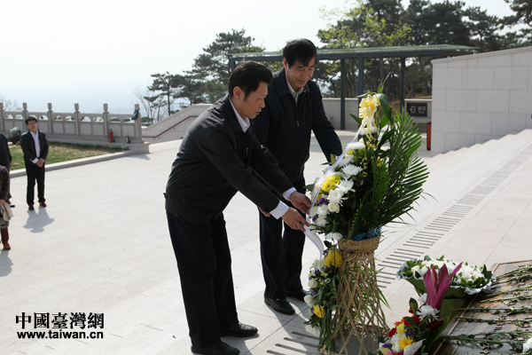 黃志賢副主席、張寧秘書長向無名英雄敬獻(xiàn)花籃。(黃文濤 攝 中國臺灣網(wǎng)發(fā))