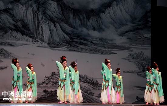 來(lái)自北京市舞蹈學(xué)院的10多位少女表演舞蹈《踏歌》。(中國(guó)臺(tái)灣網(wǎng) 高斯斯 攝)