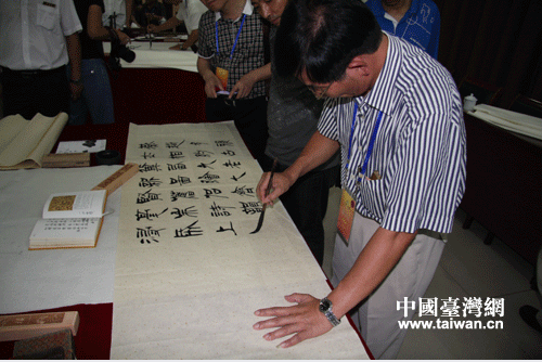 陳志聲在進(jìn)行書法創(chuàng)作(中國(guó)臺(tái)灣網(wǎng)-蕪?fù)瑪z)