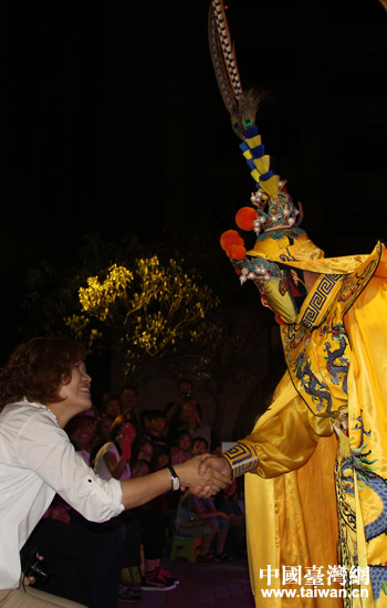 藝術(shù)家表演節(jié)目變臉并近距離與臺下觀眾互動。(中國臺灣網(wǎng) 高斯斯 攝)