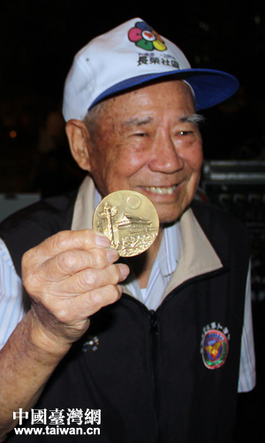 86歲的臺灣老兵向記者展示自己去北京游玩時購買的紀念幣。(中國臺灣網(wǎng) 高斯斯 攝)