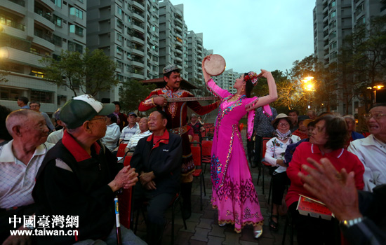 新疆歌舞團(tuán)與社區(qū)觀眾親切互動(dòng)。(中國(guó)臺(tái)灣網(wǎng) 高斯斯 攝)