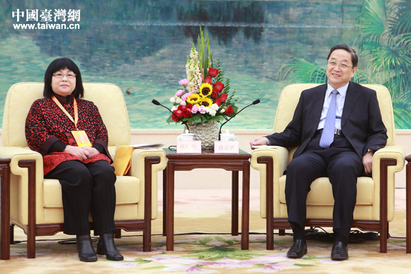 16日上午,全國(guó)政協(xié)主席俞正聲在北京會(huì)見(jiàn)了出席“2014海峽兩岸工會(huì)論壇”的臺(tái)灣工會(huì)界代表。圖左為海峽兩岸勞工發(fā)展交流協(xié)會(huì)理事長(zhǎng)侯彩鳳。(中國(guó)臺(tái)灣網(wǎng) 于斯文 攝)
