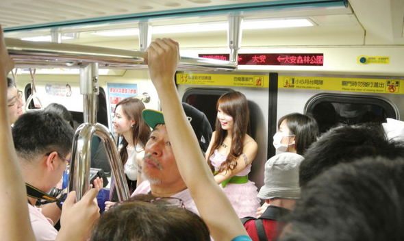 春電展出新招:13臺妹制服誘惑陪搭捷運。(臺媒圖)